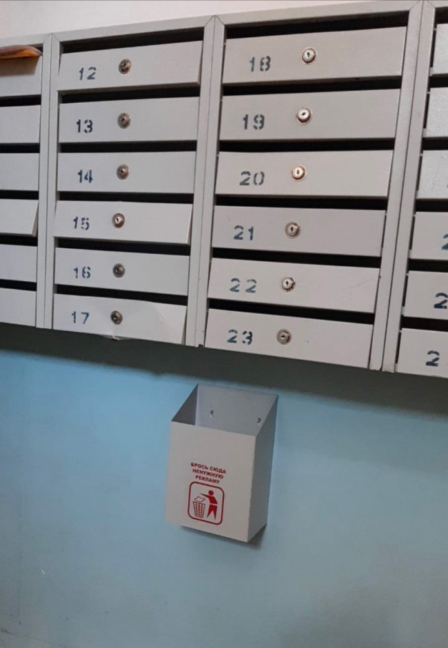 Друзья, вы заметили эти емкости для бумажного «спама», которым заполняются ваши почтовые ящики?Просьба: не раскидывайте бумагу по площадке, все ненужное кидайте в эту подвесную урну.