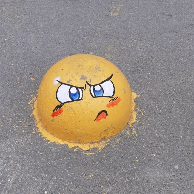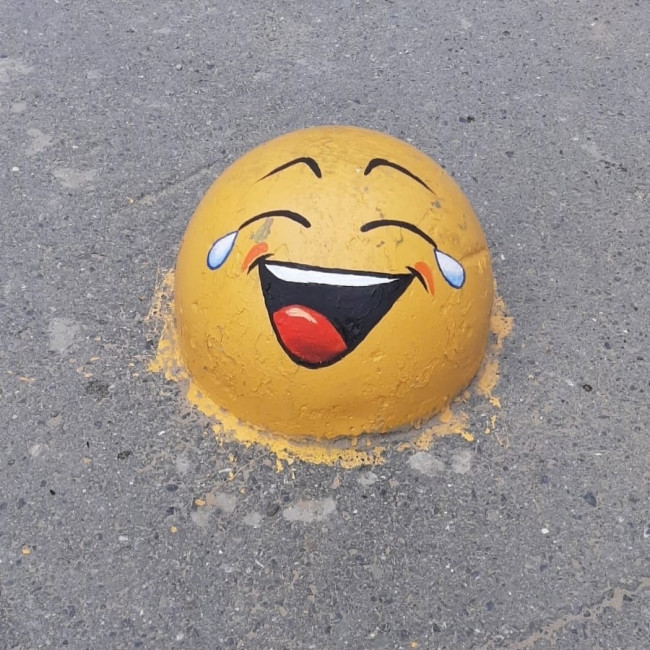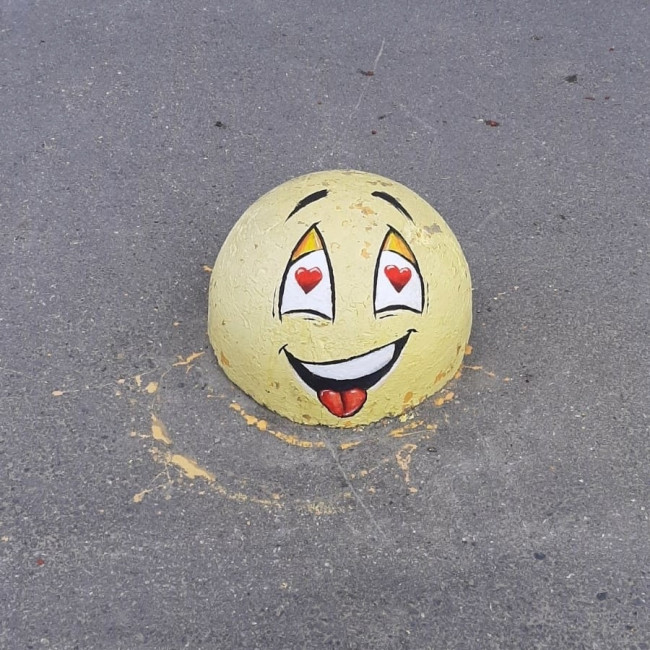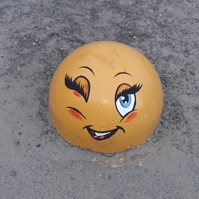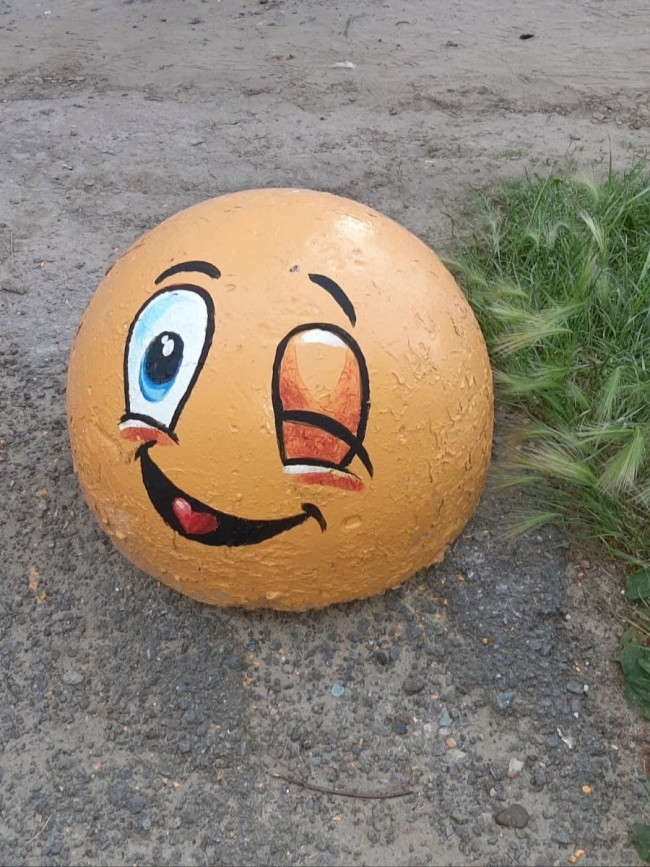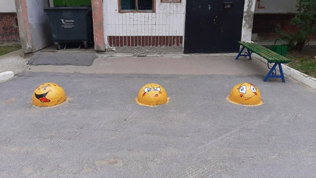 Мы превратили полусферы, установленные перед подъездами наших домов, вот в такие смайлики . Как вам идея?
